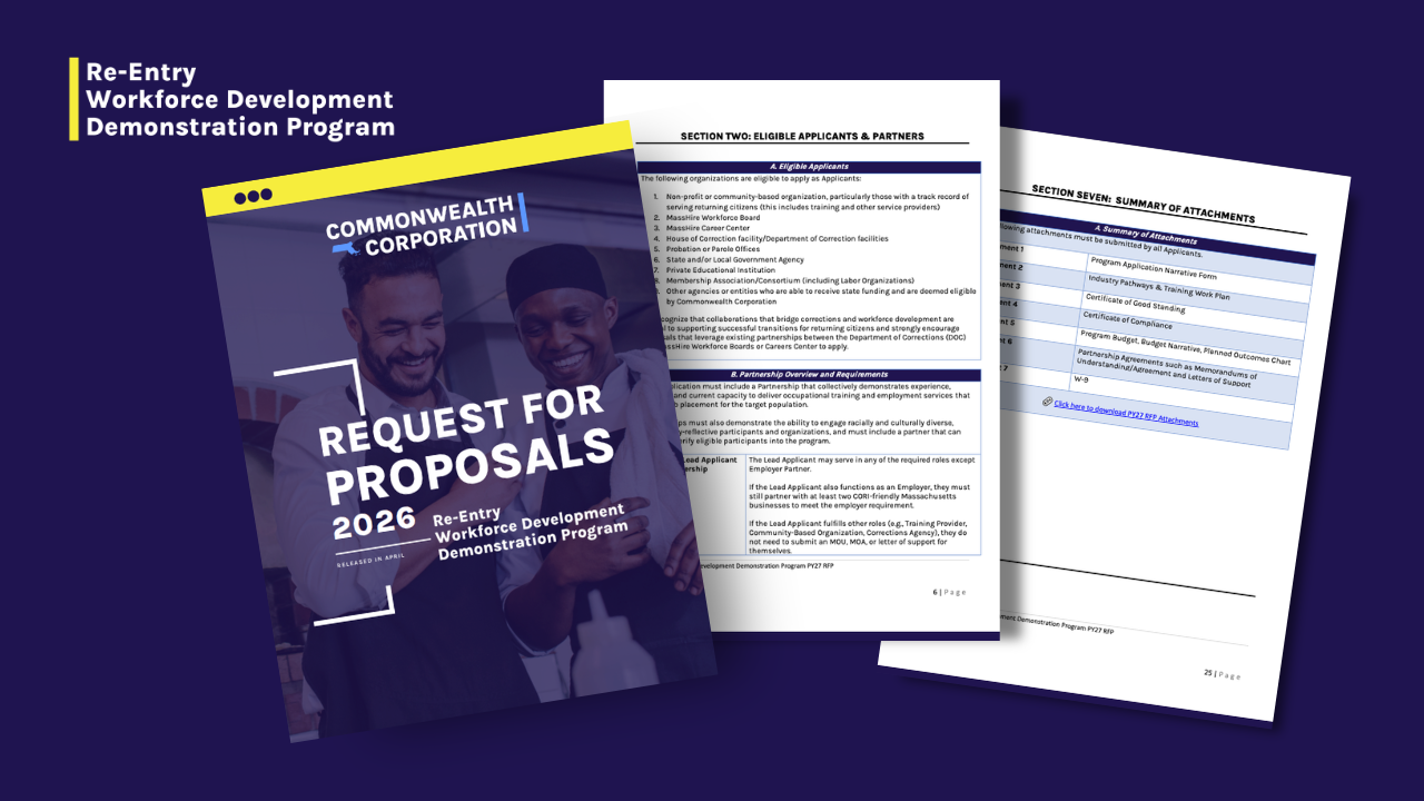 Commonwealth Corporation is a quasi-public agency in Massachusetts overseen by the Executive Office of Labor and Workforce Development. Our mission is to foster workforce equity by delivering innovative and collaborative professional development solutions that help diverse communities and employers succeed. We administer and deliver a wide range of publicly and privately funded grant programs to create or expand education and training capacity for in-demand occupations. For more information, please contact us.